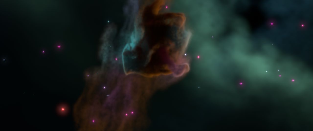 The image above is composited from four passes, Nebual, Nebula Pointcloud, Background, and Stars. Later I might post a explanation of my compositing since there are some cool things going on like RGB lighting.
